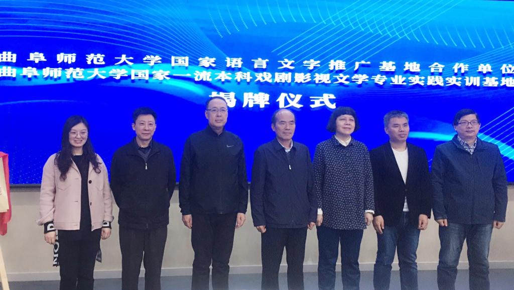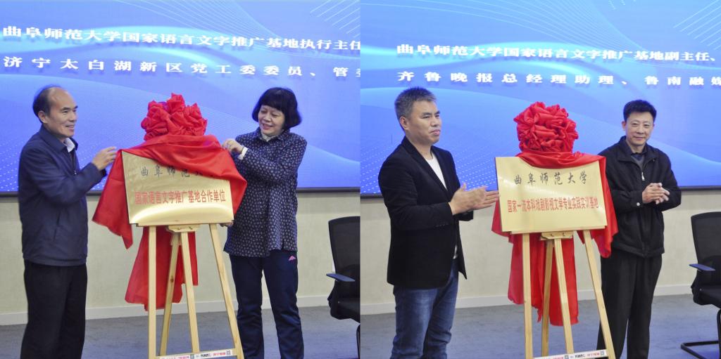 仪式上,夏静、张成俊共同为“完美网页版国家语言文字推广基地合作单位”揭牌,杨新刚、马晓伟为“完美网页版国家一流本科戏剧影视文学专业实践实训基地”揭牌。