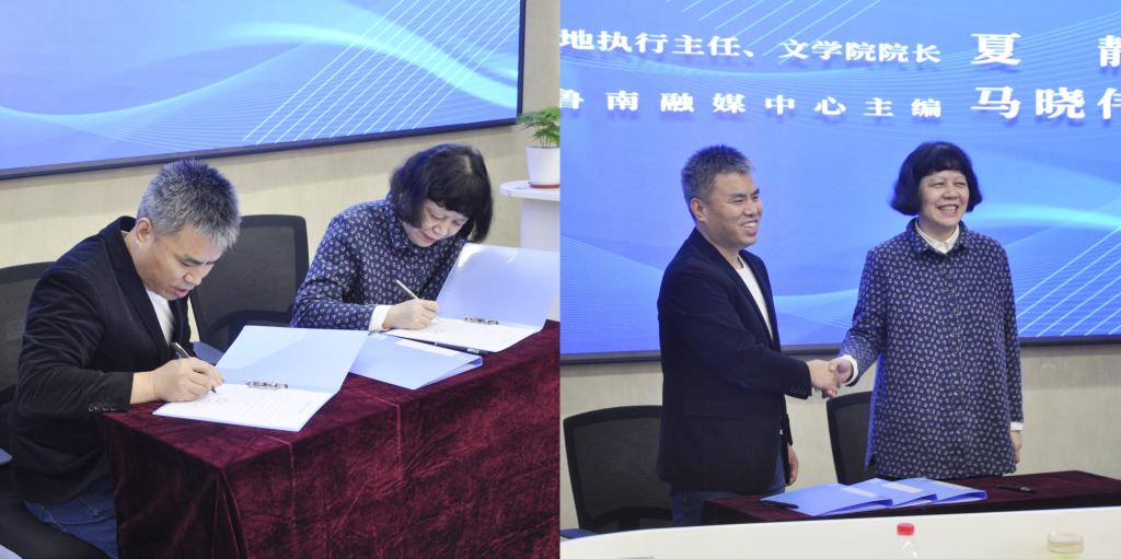 揭牌仪式后,完美网页版文学院和齐鲁晚报鲁南融媒中心签署实践实训基地协议书。完美网页版、齐鲁晚报·齐鲁壹点将以此合作为契机,借助国家语言文字推广基地、国家一流本科戏剧影视文学专业的学术优势、资源优势,发挥高校智库效应,致力于传承和弘扬优秀传统文化、助力济宁太白湖新区打造市级文化功能核心区。