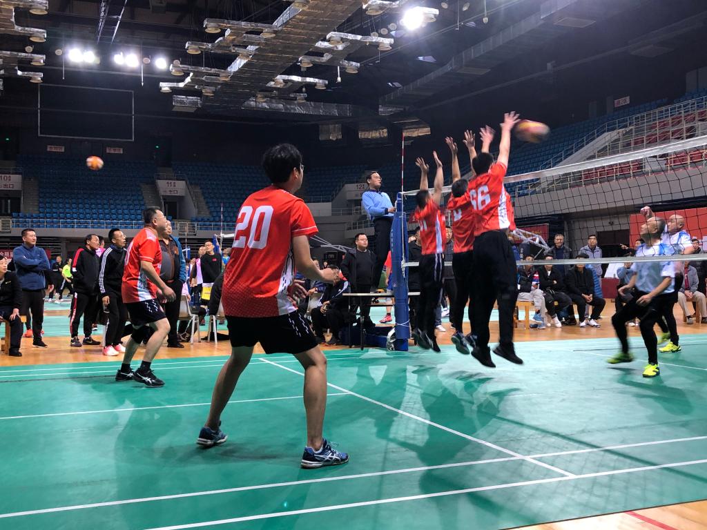 赛场上,参赛队员发扬团队精神,积极配合,你来我往,互有攻防,吊球,扣杀,拦网,打得相当精彩。场上比赛打得紧张激烈、难分高低,场下不时掌声阵阵,气氛热烈。