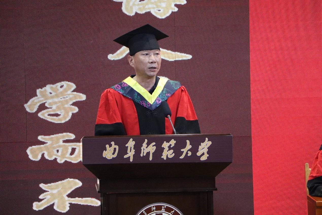毕业研究生代表张亮、本科生代表赵明君向即将离开的母校送上了最真挚的祝福,表达了对老师的无限感恩及对曲园的深深留恋,表示将会带着母校的祝福与期盼,让青春在奋斗中绚丽多彩。