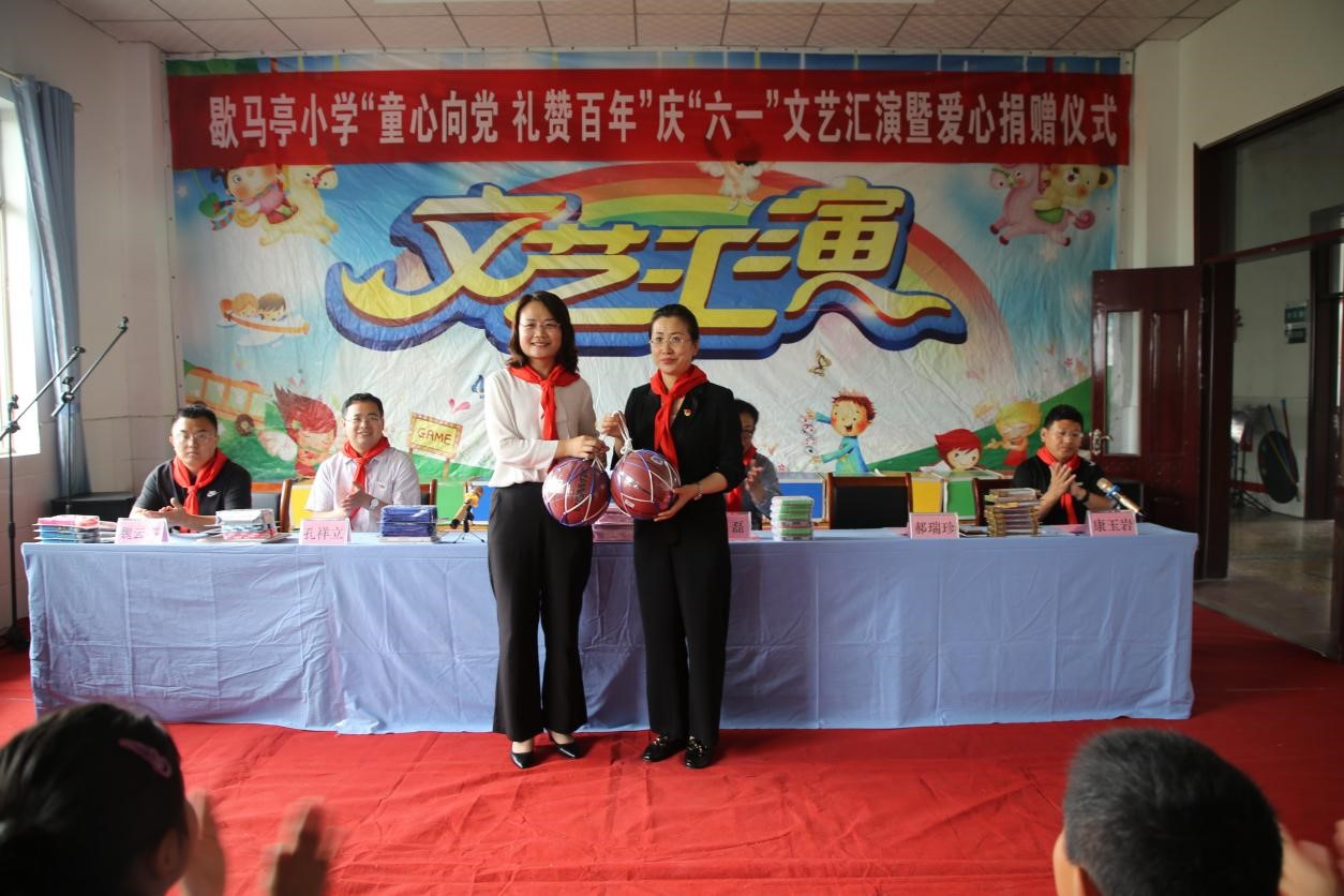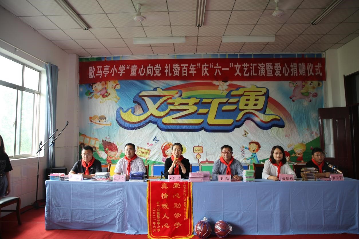 曲阜师大新闻中心讯 6月1日,数学科学学院师生走进歇马亭小学,举办了“歇马亭小学‘童心向党 礼赞百年’庆‘六一’文艺汇演”暨爱心捐赠仪式。数学科学学院团委书记朱伟卫、办公室主任孔祥立、教工党支部书记魏云亮、歇马亭小学校长郝瑞珍以及辅导员老师和学生代表参加了活动。
