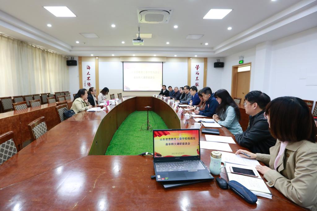 曲阜师大新闻中心讯(通讯员:倪芳芳  摄影:刘萌)为进一步加强和改进高校统战工作,4月30日,山东省委教育工委学校统战处副处长王莉一行三人来校调研,指导统战工作。学校党委常委、统战部部长乔正高,党委常委、宣传部长张隆海出席汇报座谈会。学校民主党派基层组织、校知联会及相关部门负责人参加了座谈。