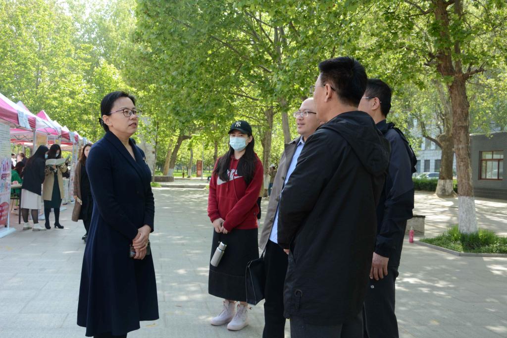 学生工作处处长姜美颖在招聘会现场与青岛市人社局与会领导、招聘单位代表进行深入交流。针对青岛市招才引智政策、招才引智计划、对大学生的基本素质能力要求、毕业生职业发展等方面进行了了解,并邀请青岛市多组织优质单位来校招聘。