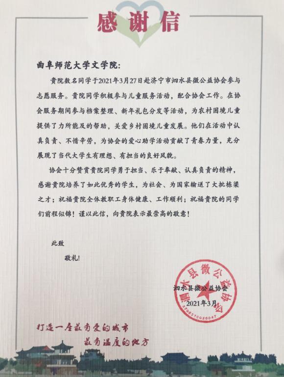 曲阜师大新闻中心讯 为深入贯彻落实学校党史学习教育动员大会精神,近日,文学院团委结合当下社会现实开展“学党史,见行动”系列社会实践活动,学院部分入党积极分子来到泗水县微公益协会,协助协会开展志愿服务活动。
