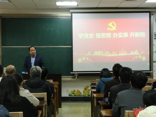 刘进从党史学习教育的背景意义、目的要求、重要内容等方面,对习近平总书记重要讲话精神进行了讲解。他结合学院实际,立足2021年工作要点,围绕全面从严治党、人才培养、科研教学、学科建设和管理服务等方面进行了部署。要求全体师生提高政治站位和思想认识,深入学习党的百年历史,紧紧围绕学史明理、学史增信、学史崇德、学史力行,传承红色基因,将党史学习教育内化于心、外化于行;要牢记党的初心使命,扎实推进好“我为群众办实事”活动,扎实开展联系师生“大走访”、民生难题“大排查”、服务师生“大提升”;要以学院事业发展为主线,把握新发展阶段,贯彻新发展理念,服务新发展格局,在党的建设、人才培养和学科建设等方面上取得更好的创新与突破,迈好“十四五”第一步,彰显新气象。