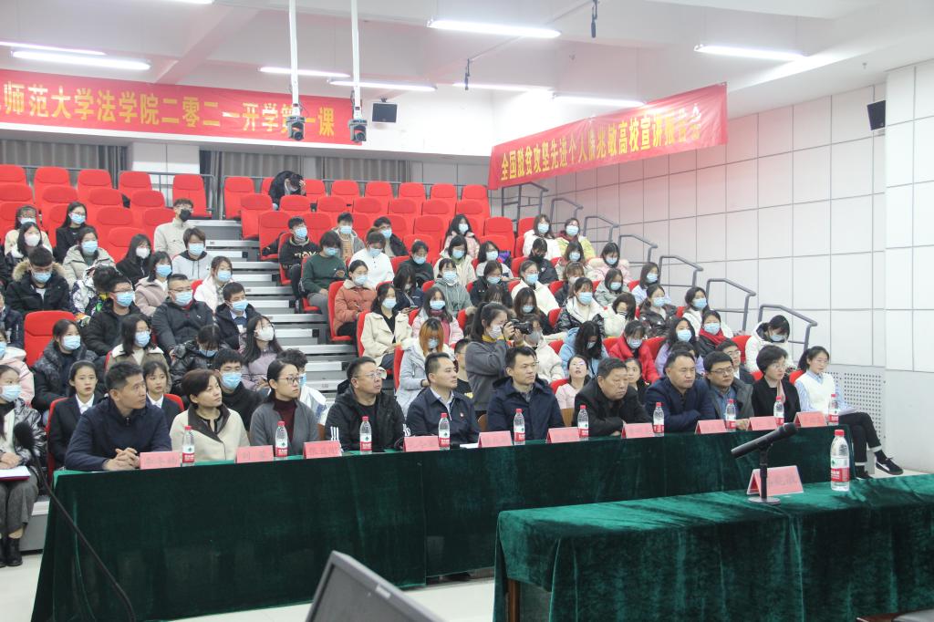 曲阜师大新闻中心讯(通讯员:石路阳 摄影:王若洁) 3月1日,完美网页版法学院举办主题为“弘扬脱贫攻坚精神, 新青年建功新时代”的开学第一课活动。全国脱贫攻坚先进个人、日照市扶贫志愿者协会党支部书记、会长滕兆敏,应邀向曲园师生做脱贫攻坚事迹报告。学校党委常委、宣传部长张隆海出席活动并为滕兆敏颁发了“校外思政导师”聘书。日照校区办公室主任孔令军,法学院党委书记曹明亮、院长张益刚,以及学生工作处、团委相关负责人参加了报告会。
