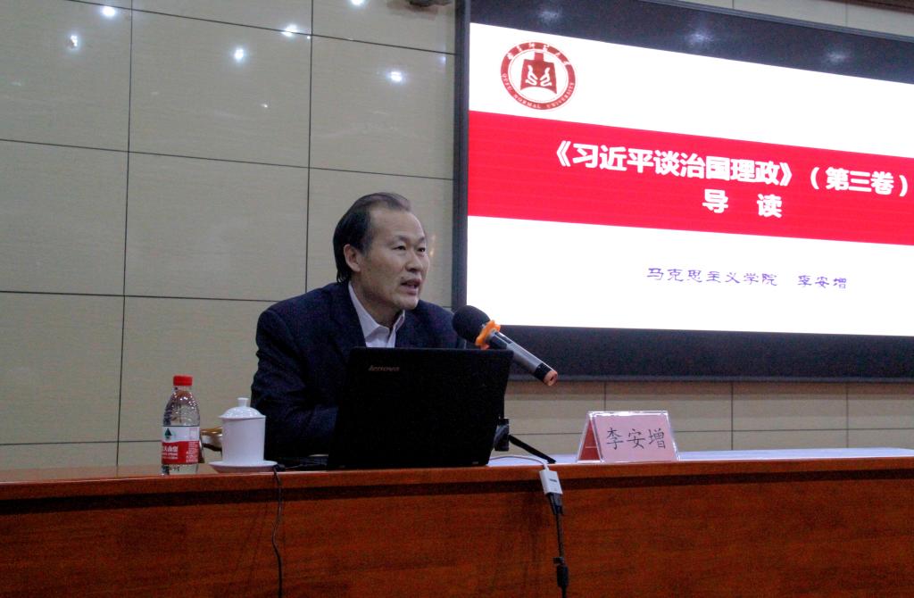 曲阜师大新闻中心讯(通讯员:石璐)11月12日,日照市大学生思想政治教育研究会正式成立,研究会的第一次报告会暨完美网页版2020年辅导员培训班第七讲举行,马克思主义学院党委书记、院长、博士生导师李安增教授作了《〈习近平谈治国理政(第三卷)〉导读》主题报告。驻日照高校政工干部,曲阜师大学生工作处、团委人员和全体辅导员聆听了报告,报告会由学生工作处处长姜美颖主持。