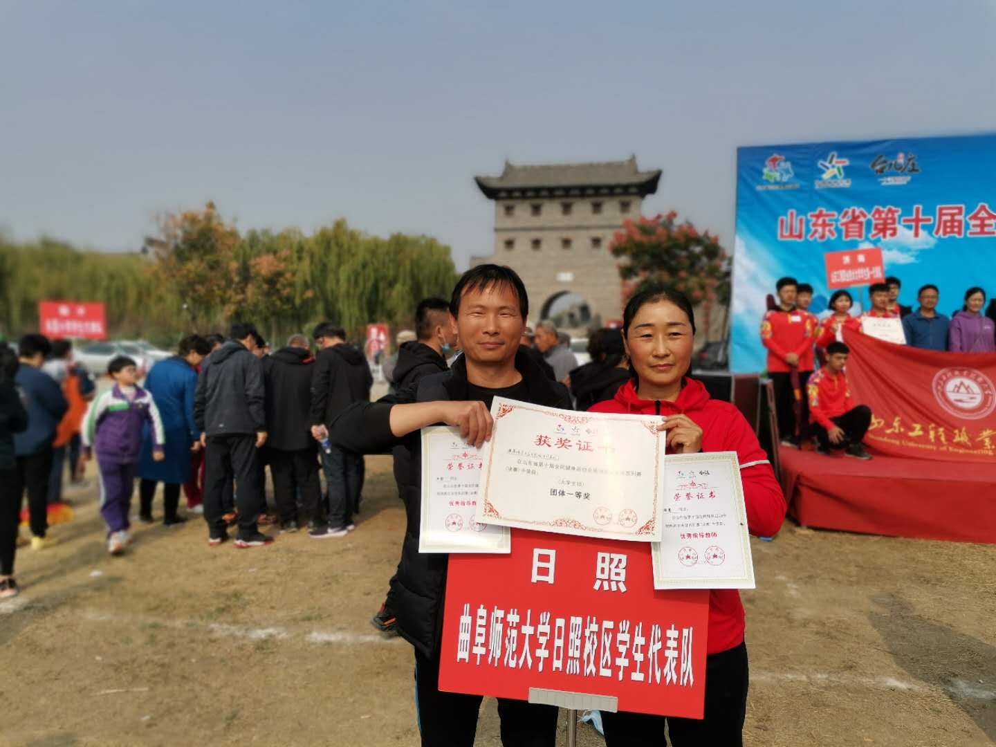 曲阜师大新闻中心讯 10月30日至11月1日,由山东省体育局、省总工会、省妇联、省教育厅、省文旅厅、省卫健委、省体育总会主办的山东省第十届全民健身运动会场地高尔夫球系列赛决赛在古城台儿庄举行。由体育教学部主任杨弢教授领队,教练员王哲老师、周慧老师及我校5名运动健儿组成的代表团参加了本次比赛。