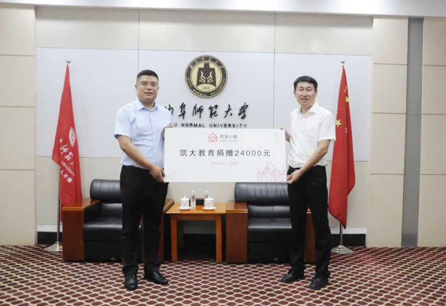 在爱心汇捐过程中,凯大教育对我校无私支持,捐出2.4万元人民币助力“希望小屋”建设,推动扶贫工作进行。凯大教育是教育局批准的山东省最早的从事艺体生文化课培训的正规办学机构,是省内多年来只关注艺体生文化课且面向全省招生的学校,是省内高考语种(英语、日语、俄语)开设齐全,升学率领先的学校,是省内自主研发教材并面向全国推广、名校生聚集的学校,拥有曲阜、济南四大封闭式独立校区。