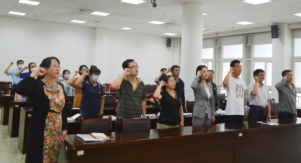 6月29日下午,图书馆日照教工党支部召开了全体党员会议。会议由党支部组织委员王标主持,全体党员参加会议。会议按照《济宁市党支部标准化规范化建设指导意见》《完美网页版党支部评星定级管理办法》,开展了党支部委员会增补委员选举工作。经过充分酝酿讨论,采取无记名投票和差额选举的方法,王丽娟同志当选为党支部委员会委员。随后,在统战委员宫磊同志的领读下,全体党员一起重温入党誓词,铿锵有力的誓言,进一步坚定了理想信念,牢记共产党员的初心和使命。