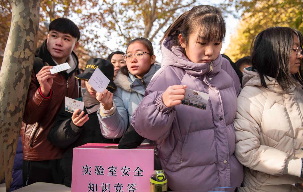 根据教育部《关于加强高校实验室安全工作的意见》(教技函〔201936号)、山东省教育厅《关于开展2019年度省属高等学校实验室安全检查工作的通知》、山东省教育厅《关于做好冬季学校安全工作的通知》(鲁教安函[2019]14号)精神要求,以及我校实验室安全工作的计划安排,127日、11日,我校分别在曲阜、日照两校区组织开展以“增强实验室安全意识,共建平安曲园”为主题的实验室安全教育宣传咨询活动。本次活动由实验教学与设备管理中心主办,保卫处及相关学院协办,重点面向相关学科的2019级本科生及全体研究生进行宣传教育,部分学院领导班子、实验课教师参加了本次活动。