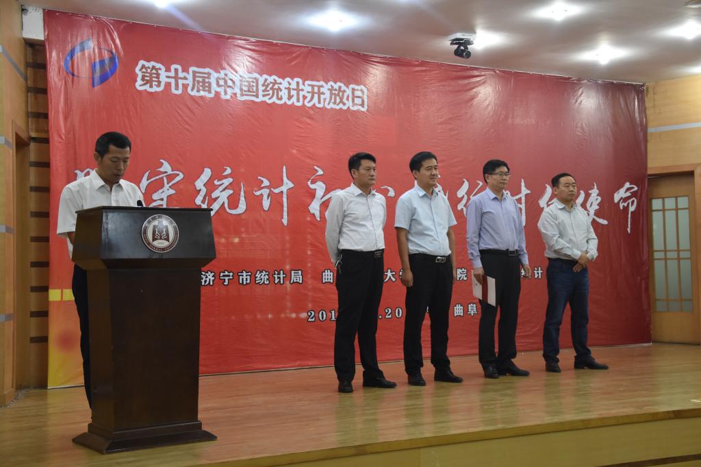 9月20日上午,我校统计学院联合济宁市统计局、曲阜市统计局举办第十届中国统计开放日活动,此次活动以“坚守统计初心 践行时代使命”为主题。出席本次活动的领导有:济宁市统计局副局长魏中齐,济宁市统计局数据中心主任段英杰,曲阜市统计局局长张立忠,我校统计学院院长尹传存,副院长赵胜利,系主任王明秋。济宁市统计局、曲阜市统计局相关科室负责人及学生代表300余人参加了本次活动。