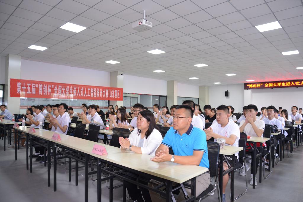 6月23日,第十五届“博创杯”全国大学生嵌入式人工智能设计大赛山东赛区比赛在我校举办。来自全省10所高校56支队伍,近200名同学参加了本项赛事。参赛作品涉及物联网、嵌入式、移动感知计算、机器人控制等技术领域。经过现场展示与答辩,专家组评出特等奖11项,一等奖22项。我校软件学院学子,经过激烈的角逐,获得特等奖2项,一等奖4 项。大赛中的优秀作品将代表山东赛区参加7月份在北京举办的全国总决赛。