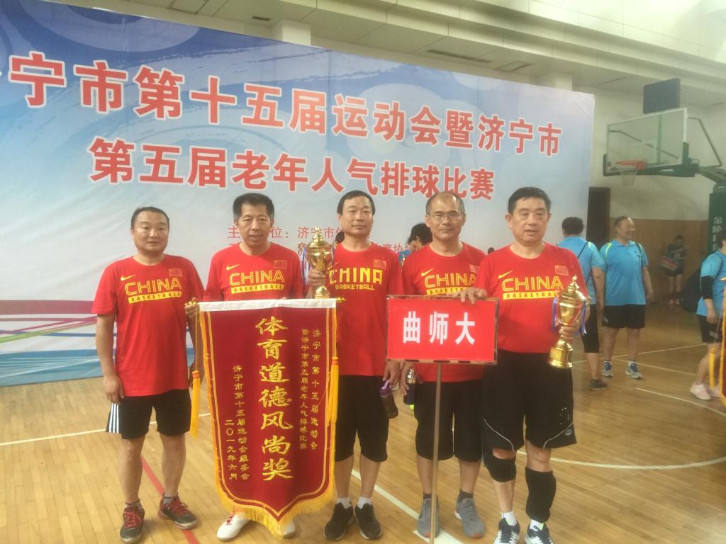 6月10日—12日,由济宁市体育局主办,济宁市老年人体育协会承办的济宁市第十五届运动会暨济宁市第五届老年人气排球比赛在济宁举行,我校老年气排球队经过激烈拼搏,最终获得气排球男子组第一、女子组第二的佳绩,并获得由组委会颁发的道德风尚奖。