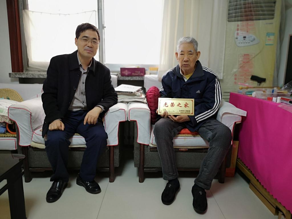 4月16-22日,离退休工作处对我校离退休教职工退役军人117人进行入户挂牌活动。离退休工作处处长石会学带领工作人员及安装人员到退伍军人家中送上并悬挂“光荣之家”光荣牌,同时也带去了学校党委对退伍军人的关爱和问候。悬挂光荣牌的过程中,不少老兵难掩激动、兴奋,大家纷纷对学校党委的关爱表示由衷的谢意。