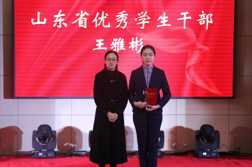 典礼上,全国大学生数学建模大赛获奖团队,第四届中国“互联网+”大学生创新创业大赛山东省金奖、国家铜奖创业团队,第九届山东省大学生数学竞赛(非数学类)获奖个人,山东省优秀毕业生,山东省优秀学生干部,道德先锋模范,“创青春”•海尔山东省大学生创业大赛获奖团队,第九届山东省大学生创业计划大赛获奖团队等上百名优秀个人和团队上台接受表彰,优秀获奖学生代表先后发言。