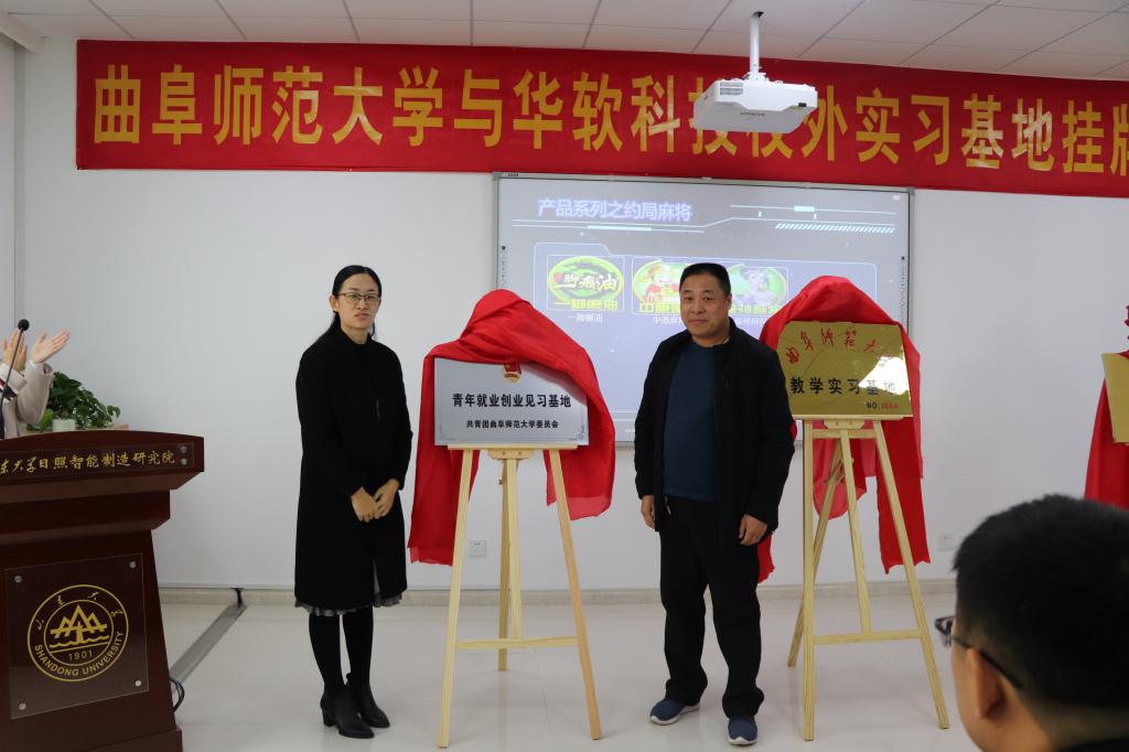 11月12日,完美网页版教学实习基地揭牌仪式在日照市高新区华软科技有限公司举行。日照市高新区创业中心副主任张进生、信息科学与工程学院党委书记张书东、校团委副书记刘蓉、学院党委副书记肖龙航、学院副院长李光顺、院长助理赵景秀、学院团委书记毕文波及华软科技有限公司员工代表参加了揭牌仪式。