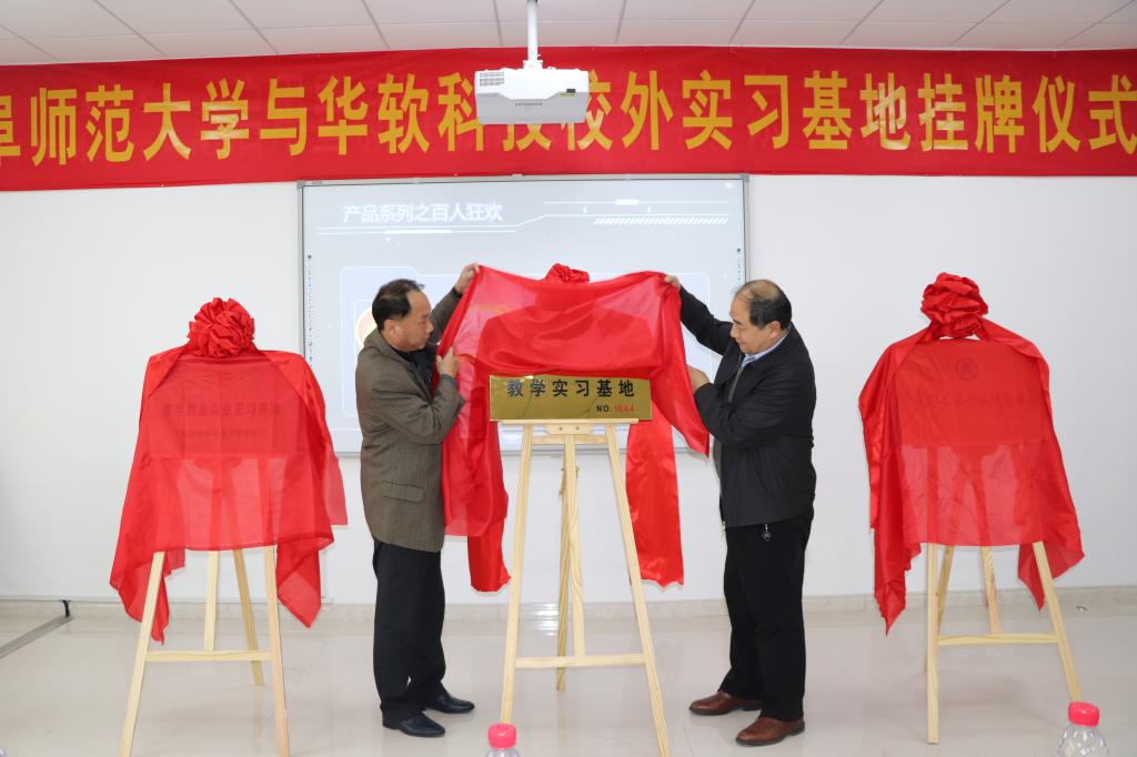 张书东简要介绍了学校、学院的发展状况,对华软科技有限公司发展业绩给予了充分肯定,对校企双方加强合作表达了良好的祝愿。华软科技有限公司董事长王民华在致辞中对母校领导老师莅临公司指导工作表示了热烈欢迎,回顾了在校求学的经历和创业的过程,表示一定要将教学实习基地建设好,为广大师弟师妹的成长成才贡献绵薄之力。