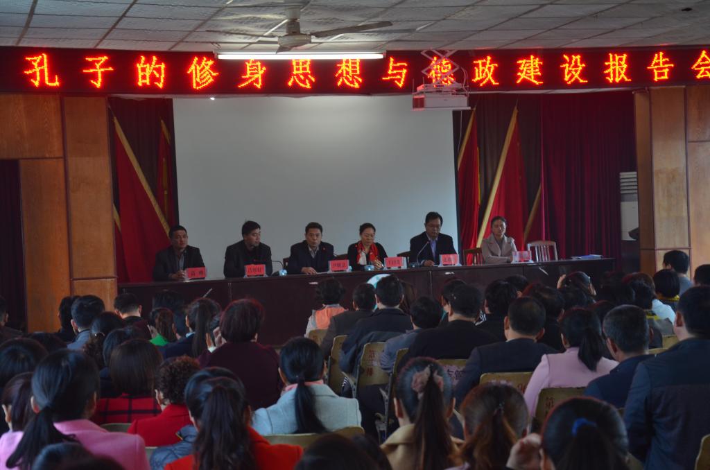 311日上午,历史文化学院全体女教工及部分党员抵达梁山县杨营镇,开展传播廉政文化和爱心帮扶活动。学院党委书记尹明法同志代表学院向杨营镇党委政府的机关干部赠送了骆承烈教授编写的《孔子论政德》一书,希望大家汲取孔子的政德思想,端正操守,做群众满意的好干部。之后,博士生导师王曰美教授为杨营镇所有机关干部以及50多个村庄的党支部书记做了题为《孔子的修身思想与政德建设》的报告,通过介绍孔子的修身思想,联系当下党风廉政建设,指出修身在政德建设过程中发挥的重要作用,希望大家能够做到知行合一,做一名合格的干部。