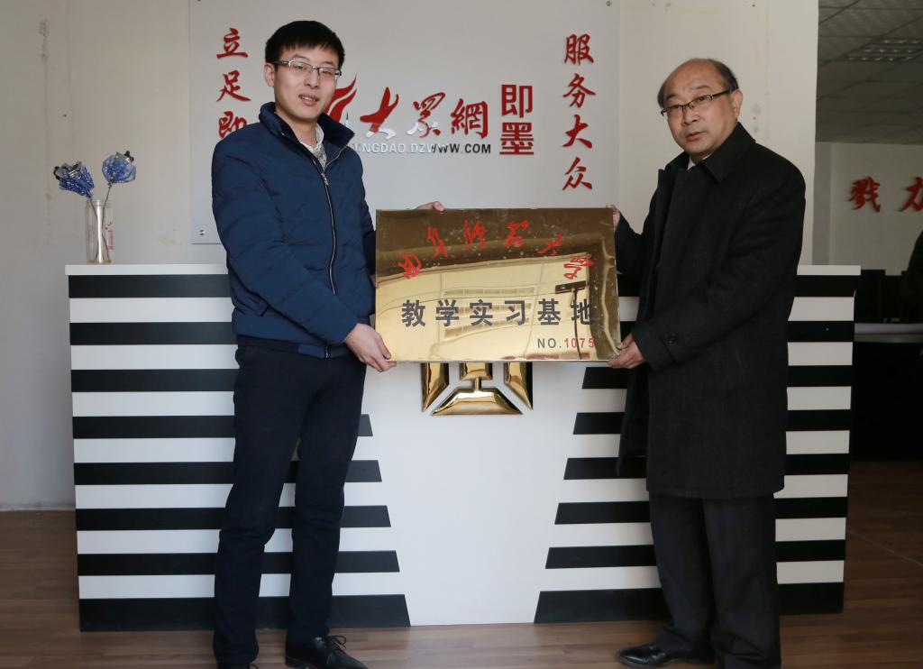 1月23日上午,“完美网页版教学实习基地”授牌仪式在大众网即墨频道举行。传媒学院党委副书记肖龙航、团委书记刘蓉,以及传媒学院部分学生参加了授牌仪式。