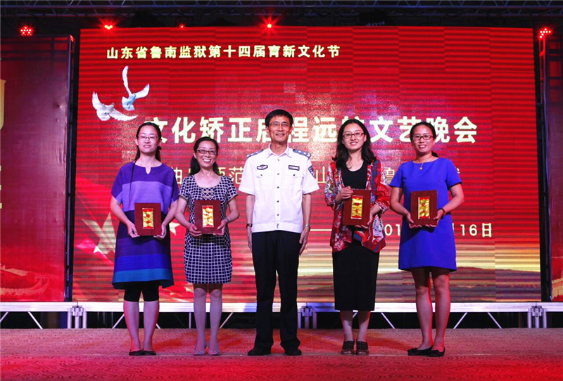 随后的揭牌仪式上,省监狱局教育改造处调研员陈建华和校区机关党委书记、学生工作办公室主任孔令军共同为生命教育实践基地揭牌,仪式由鲁南监狱副政委王立顺主持。鲁南监狱监狱长牟彬善为我校Running girls工作室四名教师颁发了兼职矫正师聘书。仪式后,文化帮教联欢晚会拉开序幕。整台晚会紧扣“崇德、明法、扬善、育人”的主题,注重思想性、教育性与艺术性的结合,融高雅、平实、感怀、励志于一体,形式新颖、主题突出、特色鲜明,既有服刑人员的精彩表演,也有日照京剧团老年之友、大学生的倾情加盟,为服刑人员奉献了一场丰富的文化大餐,活跃了狱园文化氛围,缓解了服刑人员的改造压力,使服刑人员受到了一次深刻的思想教育和灵魂洗礼。