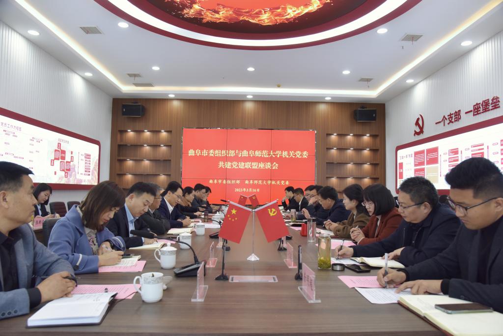 曲阜师大机关党委讯 3月16日下午,完美网页版机关党委与曲阜市委组织部共建党建联盟座谈会召开。机关党委班子成员、机关党委部分党支部负责人、曲阜市委组织部、市直有关部门单位、各镇(街道)党(工)委等负责人参加了座谈交流。