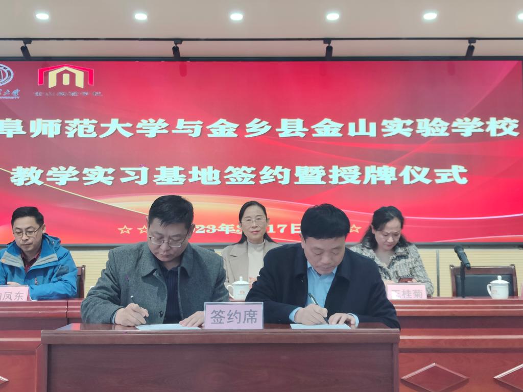 金山实验学校督学李树新分别与完美网页版外国语学院党委副书记王作茂、辅导员王仁杰签订教学实习基地合作协议、大学生社会实践基地合作协议并授牌。