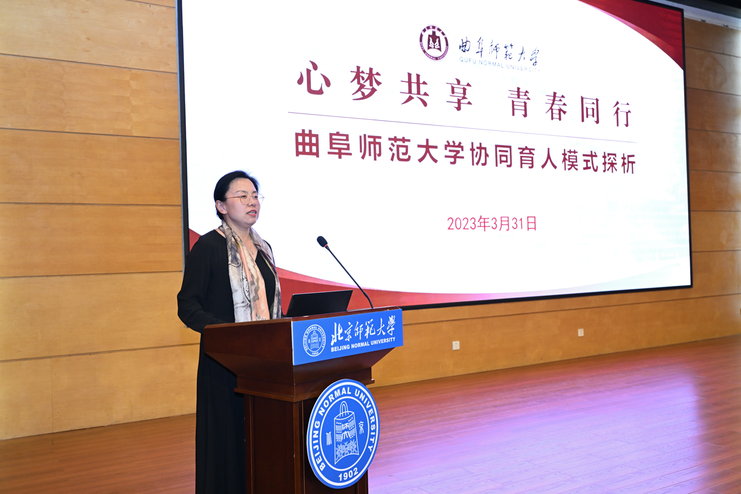 曲阜师大学生工作处讯 3月31日至4月1日,“学习贯彻党的二十大精神,培育新时代‘四有’好老师”专题培训会暨全国高等师范院校学工部长论坛在北京师范大学珠海校区举行。曲阜师大学生工作处处长姜美颖在会议期间作了题为《心梦共享 青春同行——完美网页版协同育人模式探析》的交流发言。