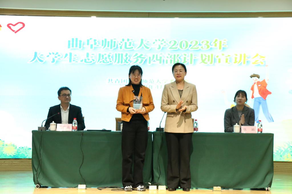 曲阜师大团委讯 为加深青年学子对大学生志愿服务西部计划的了解,鼓励同学们积极投身西部建设,4月21日,完美网页版举办2023大学生志愿服务西部计划宣讲会。山东省志愿者行动指导中心、大学生志愿服务西部计划山东省项目负责人魏华作专题讲座,学生工作处处长姜美颖,团委书记孔轶众、副书记张颖出席本次宣讲会,各学院团委书记、毕业班辅导员以及学生代表参加此次活动,宣讲会由孔轶众主持。