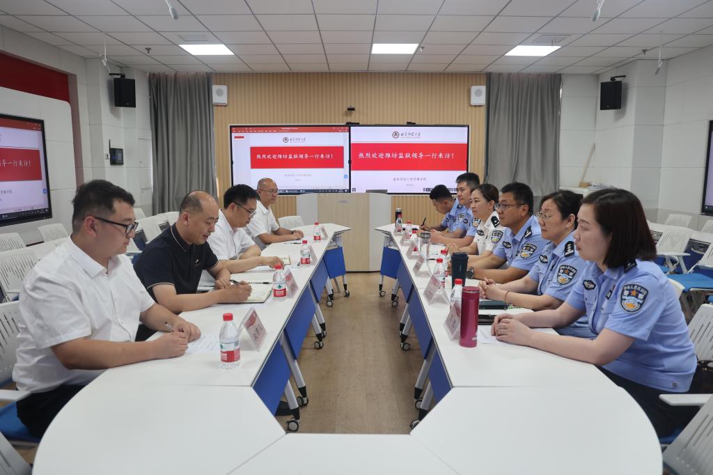 传媒学院讯  为深入落实访企拓岗相关工作安排,拓宽就业渠道和就业岗位, 6月7日,传媒学院与山东省潍坊监狱开展访企拓岗座谈会。山东省潍坊监狱党委副书记、副政委牟洪波,传媒学院党委书记田维柱、副书记田荣林、副院长赵可云、毕业班辅导员刘扬帆参加座谈。