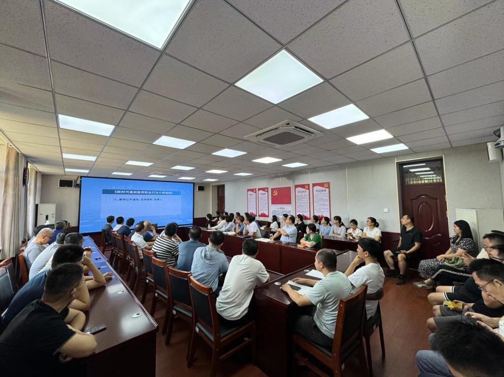 曲阜师大数学科学学院讯   为扎实推进党纪学习教育走深走实,持续强化教师思想政治工作和师德师风建设提质增效,6月26日,数学科学学院组织全院党员干部、部分教师代表观看师德师风警示教育片。