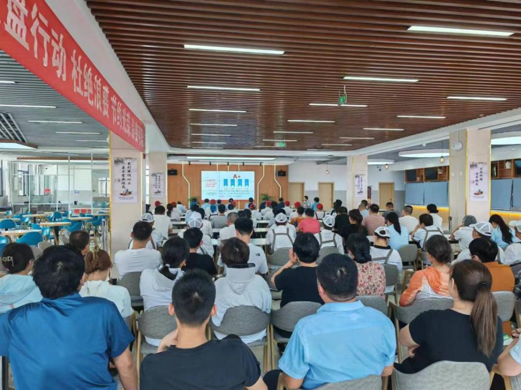 活动由后勤管理处副处长祁世友主持。后勤管理处处长展利民,曲阜市市场监督管理局副局长刘校、餐饮科科长邵士伟、北关所所长帅东峰,以及生活服务中心、各食堂经理及食堂从业人员120余人参加了本次培训活动。