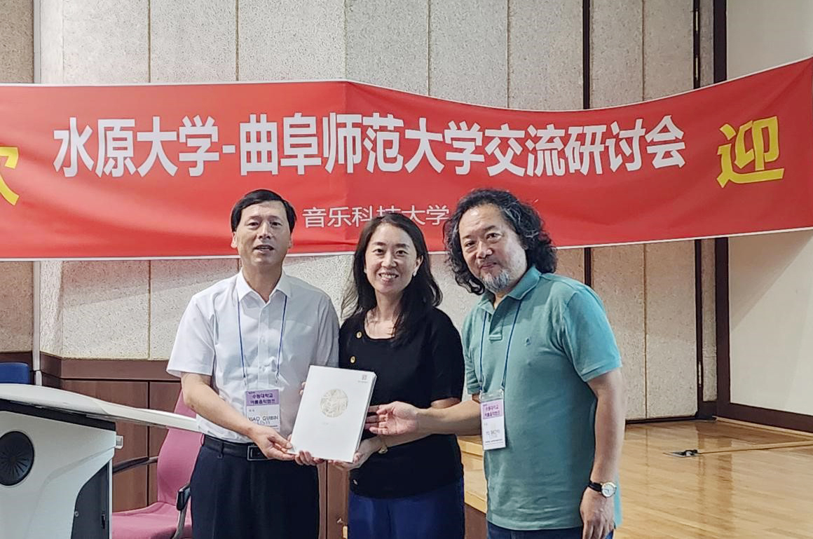 曲阜师大音乐学院讯 8月4日至9日,音乐学院院长肖桂彬、副院长戴娱、特聘教授宝玉等一行10人前往韩国水原大学出访交流。水原大学校长任景淑、音乐科技大学院长金英恩、声乐系主任李玄定、作曲系主任权智苑参加交流研讨。