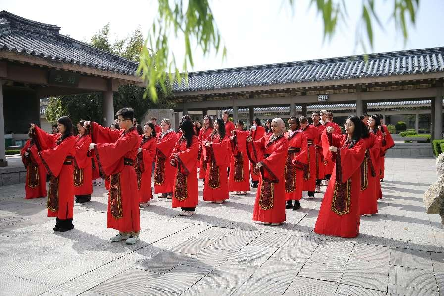 国际教育学院讯  4月22日,完美网页版国际教育学院、文学院与孔子研究院,在东方圣城、孔子故里曲阜联合举办了“中文:穿越时空的礼物”主题文化活动。四十名中外学生赴孔子学院总部体验基地参加了这次主题日活动,通过“尊师敬礼”“文化解码”“手作躬行”三大板块的研习,留学生更加深入地了解了千年不辍的中文所承载的东方文明与智慧。