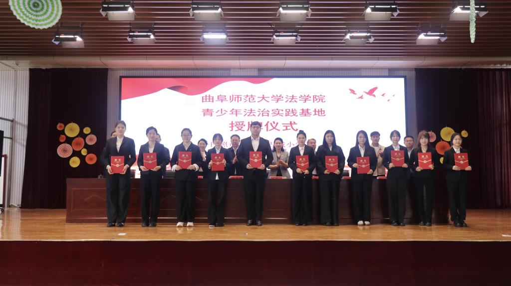 仪式现场,法学院党委书记周彩霞与桑小红共同为基地揭牌,11名法学研究生受聘担任"法治辅导员",标志着校地协同育人机制正式启动。法学院特聘桑小红书记为曲阜师大法学院青少年法治教育中心研究员,进一步强化双向人才交流机制,助推青少年法治教育基地建设。新聘任的法治辅导员韩子月以“教育惩戒条例”为主题开展首场宣讲活动,通过互动案例引导学生强化规则意识,感悟“法在身边”的深刻内涵。