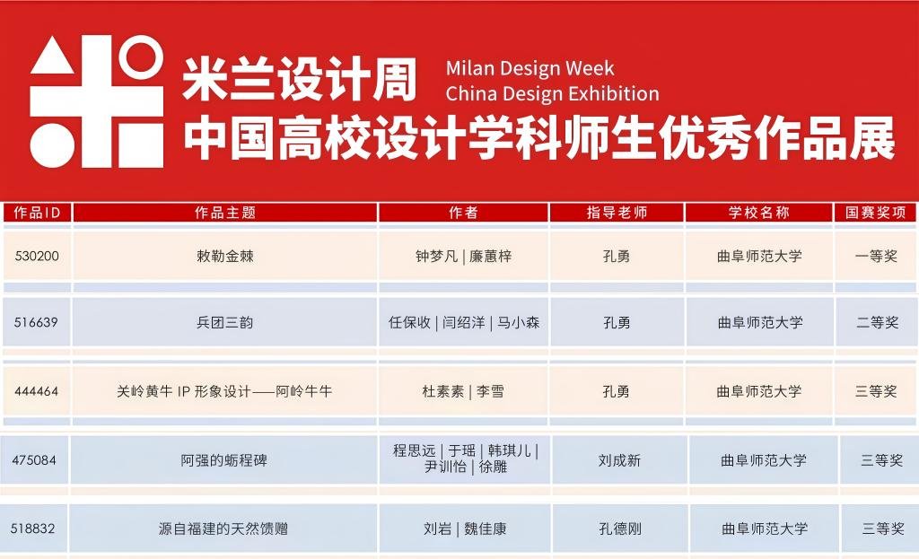 传媒学院讯 近期,第九届米兰设计周——中国高校设计学科师生优秀作品展“设计赋能‘土特产’、助力乡村振兴”公益赛道获奖名单公布,传媒学子表现出色,所提交作品在全国965所院校的19,885件优秀作品中脱颖而出,斩获国家级奖项5项,其中一等奖项1项、二等奖项1项、三等奖3项。
