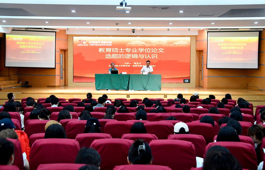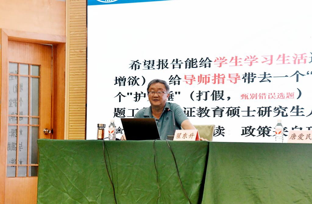 曲阜师大研究生处讯  6月9日,全国教育专业学位研究生教育指导委员会秘书处原秘书、北京师范大学翟东升教授应邀来校,为曲阜师大师生作了题为《教育硕士专业学位论文选题的逻辑与认识》的报告。曲阜师大研究生处处长唐爱民主持报告会,相关学院分管研究生工作副院长、教育硕士研究生导师、研究生教学秘书、2023和2024级教育硕士及研究生处工作人员参加活动。
