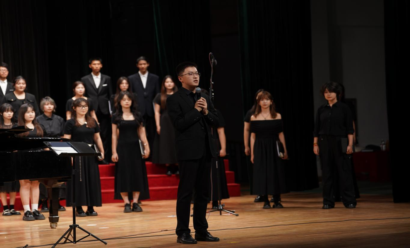 下半场,《江城梅花引》《老师我想对您说》中,学生指挥王彦博、种雨含、蒋慧贤接力登台,用歌声向师恩致敬,指挥棒起落间,是谢意的具像化;《我歌唱的理由有很多》《我认识两个你》以青春语态,唱响对生活的热爱与未知的憧憬;《当我想你的时候》借现代改编,将同窗情、离别意揉成深情告白;实验性经典曲目《4分33秒》,以“无声”留白,让观众倾听“青春的声音”,感受音乐的无限可能;《来自外公的一封信》以温情笔触,串联成长与传承的温度,引发全场情感共振。
