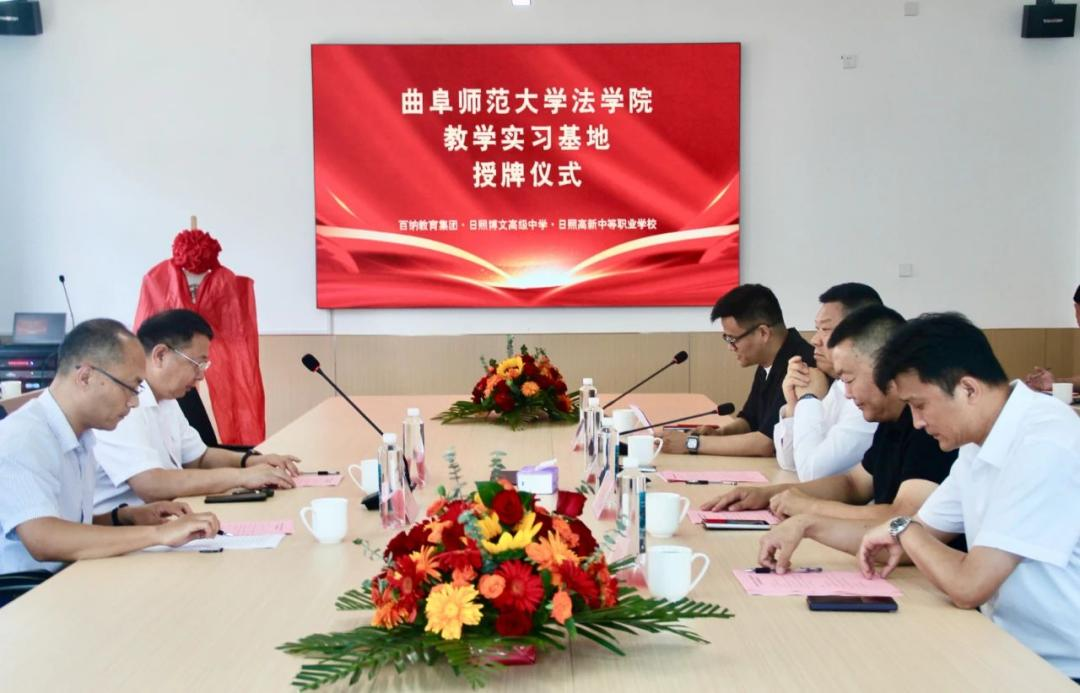 法学院讯  6月24日,法学院与日照高新中等职业学校合作办学授牌仪式正式举行。学院院长张益刚、副院长李继刚、百纳教育集团董事长左峰、集团总校长郑强、集团总裁林玉柱、集团综合办主任周瑞邵康等双方代表共同出席仪式。活动由林玉柱主持。