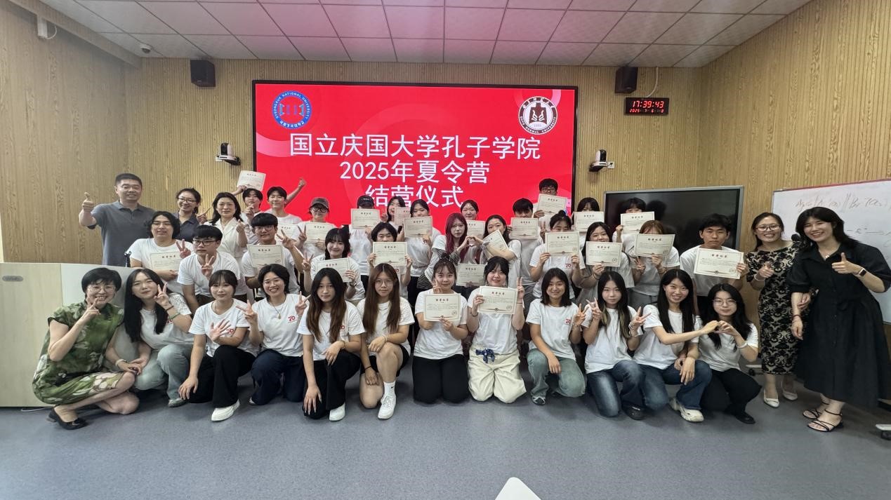 国际交流合作处讯   7月10日,由教育部中外语言交流合作中心主办、曲阜师大承办的“汉语桥”韩国国立庆国大学孔子学院学生夏令营活动顺利结营。来自国立庆国大学孔子学院的25位师生,圆满完成了为期10天的研修活动。
