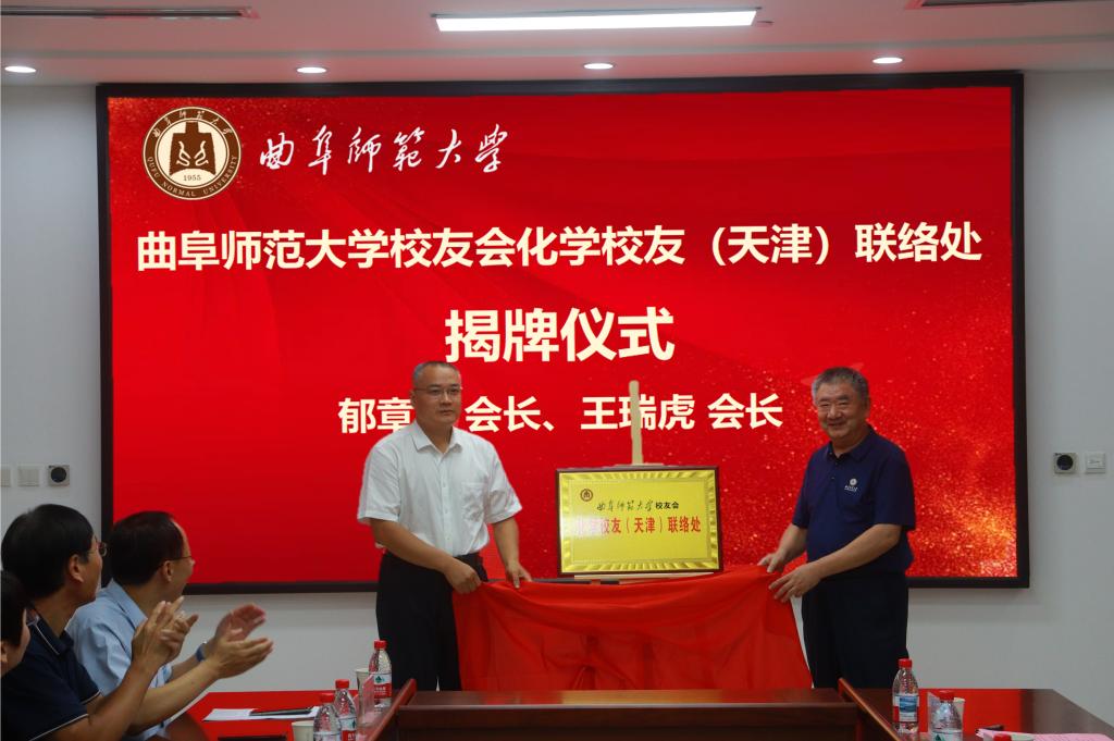 完美网页版校友会化学与化工学院分会会长郁章玉和王瑞虎共同为化学校友(天津)联络处揭牌。
