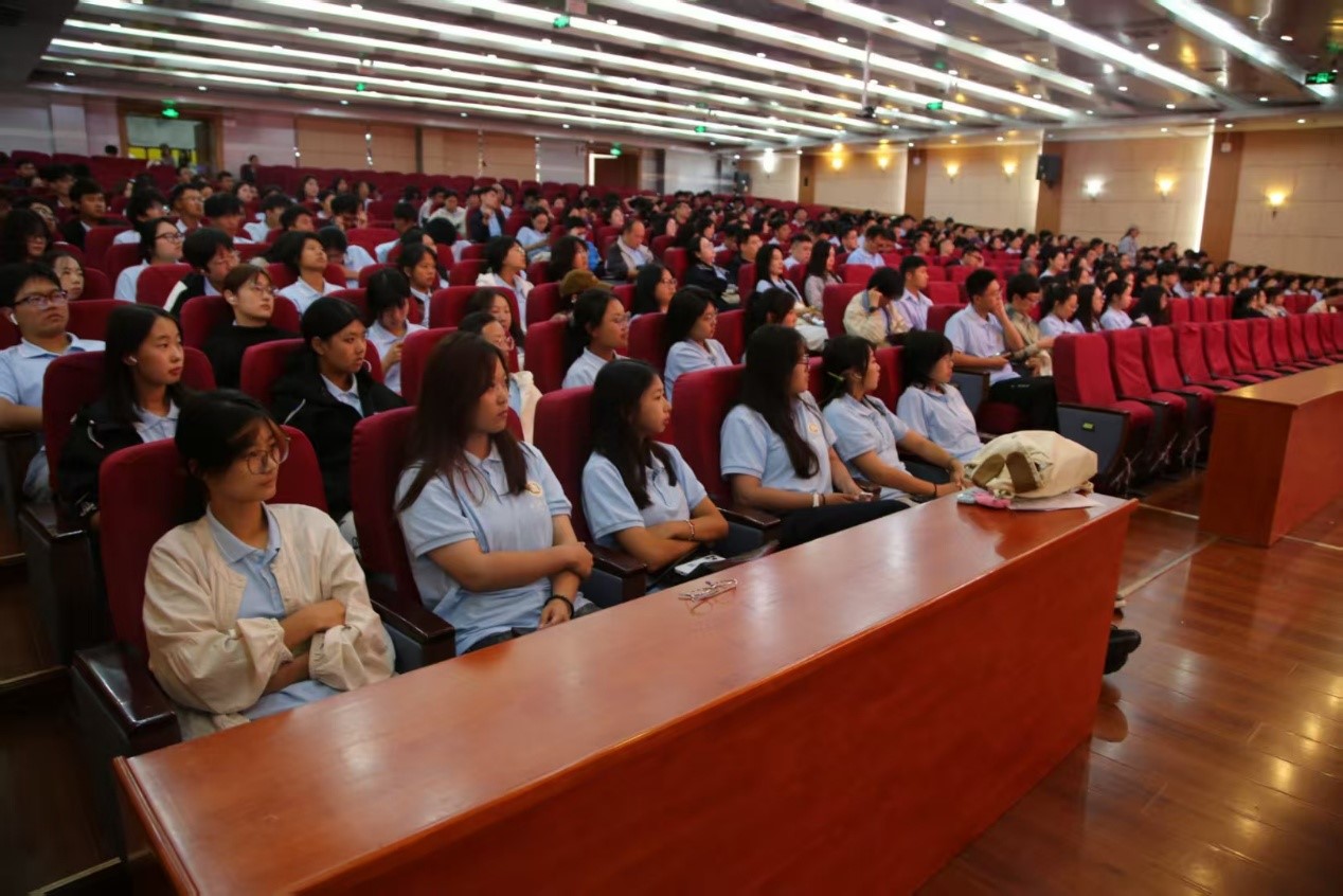 在思政课环节,苏日贺结合自身丰富的工作经历,以“忠诚担当干事业,尽职履责讲奉献”为主题,从“五个感悟”和“三个体会”入手,为新生们生动诠释了新时代工作者的职业素养与使命担当,在职业能力与素养方面为同学们树立了典范,给师生带来了一堂思政盛宴。