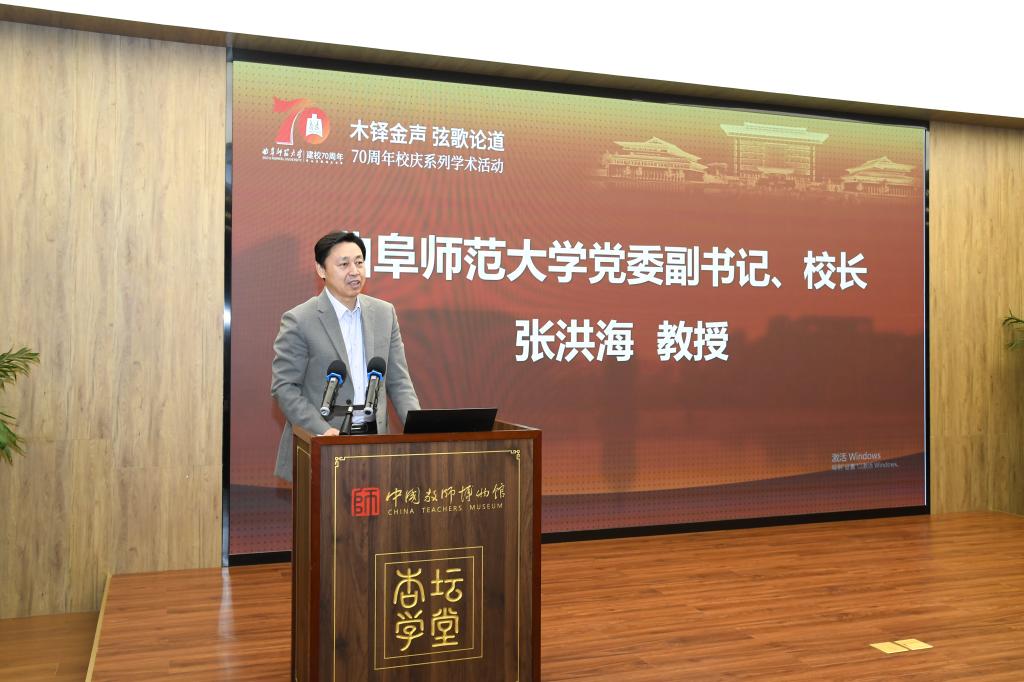 张洪海在致辞中对与会专家学者表示热烈欢迎,并简要介绍了学校的办学历史和发展特色。他表示,本次会议聚焦分析化学与纳米材料领域前沿课题,相互交流最新成果,专家们为化学学科发展出谋划策,必将促进学校化学学科的建设和高质量发展。